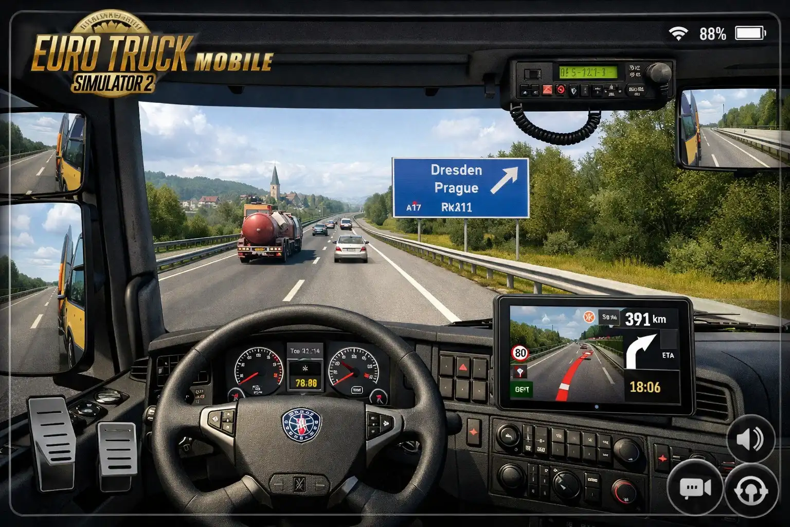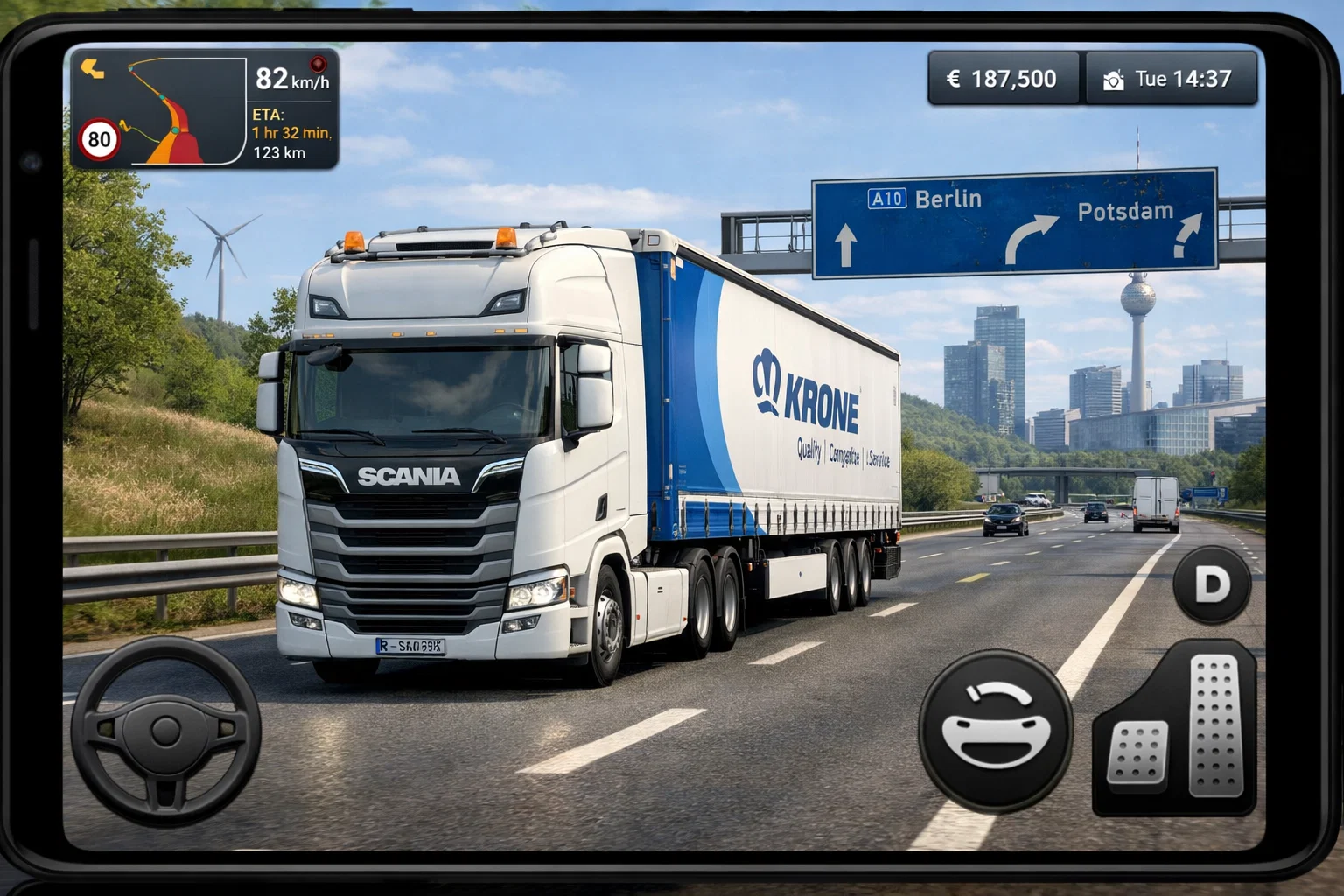 Euro Truck Simulator 2 الأصلية للهاتف هي لعبة محاكاة شاحنات تركّز على الواقعية: تبدأ كسائق شاحنة بميزانية محدودة، ثم تتدرج في العمل عبر قبول مهام نقل البضائع بين المدن، وجمع الأرباح، وتطوير شاحنتك، وصولًا إلى بناء شركة نقل متكاملة.