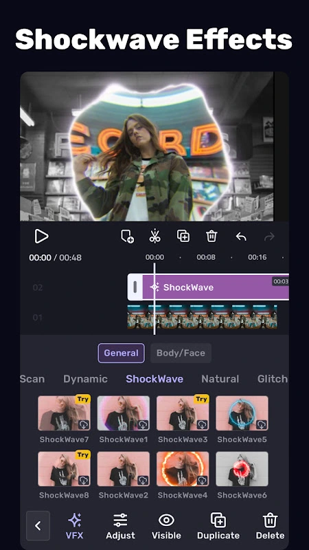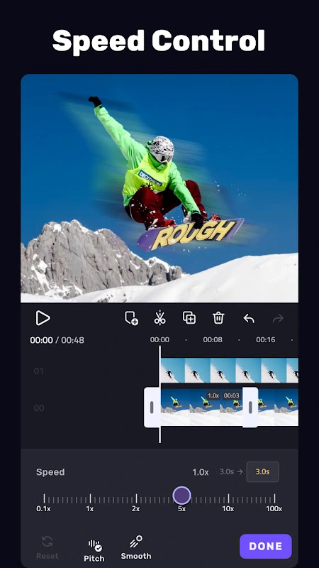 أدوات تحرير متقدمة: يقدم التطبيق أدوات احترافية مثل القطع، الدمج، التعديل على سرعة الفيديو، والتأثيرات البصرية التي تجعل الفيديو يظهر بشكل استثنائي.