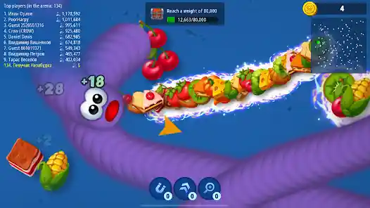 تتحكم في دودة شرهة تتنقل عبر ساحة مليئة بالطعام، تعزيزات القوة، ودودان أخرى تسعى للتفوق عليك. هدفك هو النمو بسرعة من خلال تناول الطعام مع تجنب الاصطدام بالآخرين، أو استخدام استراتيجيات ذكية للقضاء على المنافسين.