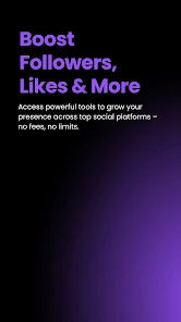 - أدوات نمو ذكية وفعالة: يحتوي التطبيق على تقنيات متقدمة تزيد من التفاعل الطبيعي على حساباتك عبر منصات التواصل الاجتماعي، مما يدعم نموًا مستدامًا وجمهورًا حقيقيًا.